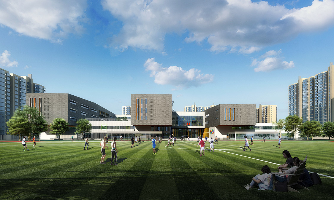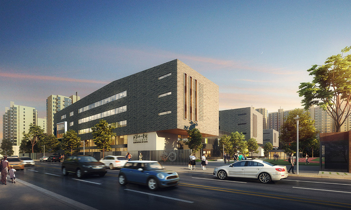 The exterior architecture connects contemporary thinking with a modern interpretation of traditional Beijing materials. The architecture invites students and the community to discover new things about the building every day, symbolically representing the evolving nature of the educational process.