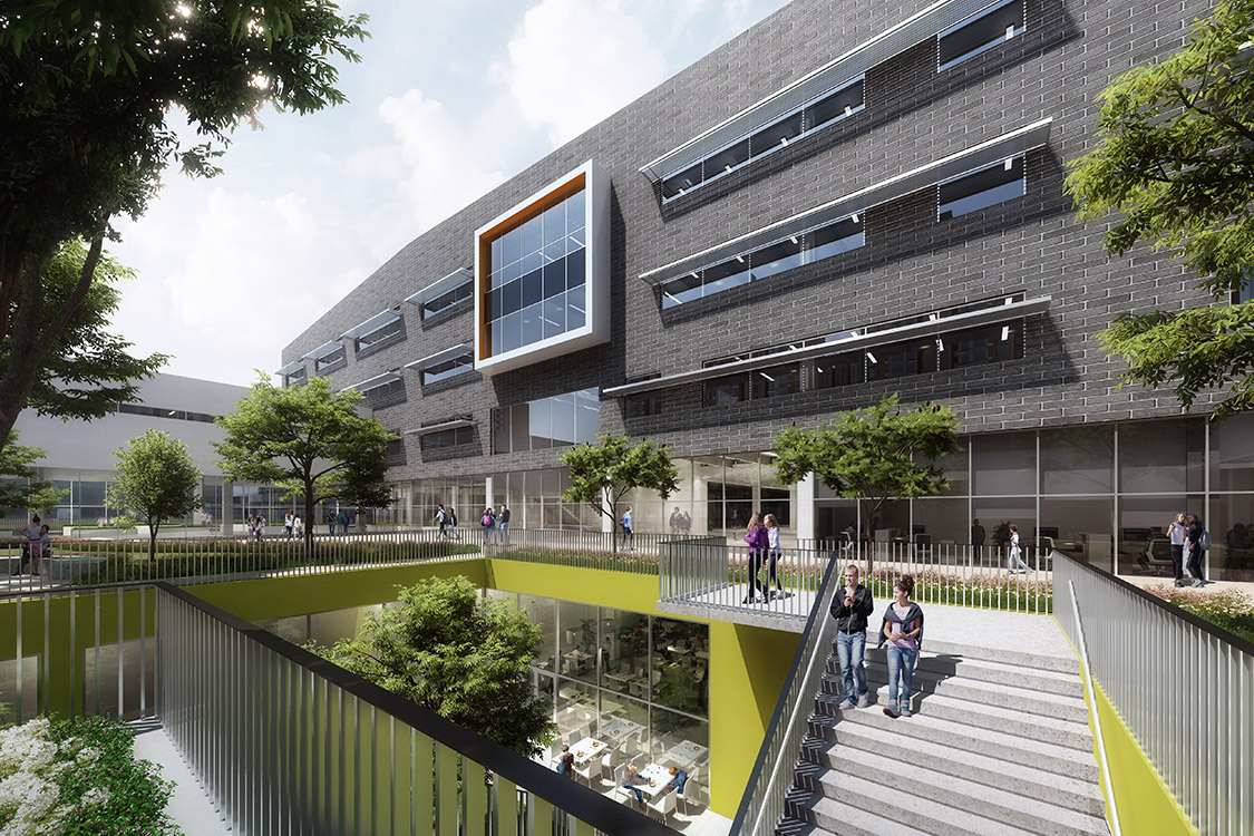 新的石景山实验中学支持面对未来的愿景,创造一个能够适应不断变化的技术以及教育学趋势的进步学习环境。 规划这个七层楼的学校围绕三个主要目标: